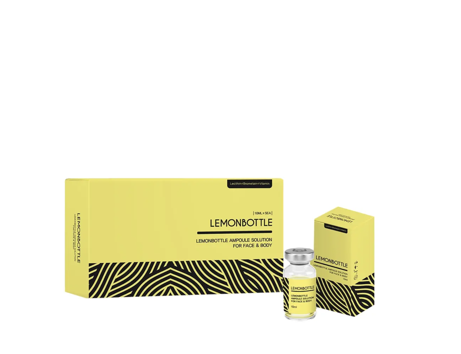 Lemonbottle Ampoule Solution is a ground-breaking lypolitic formula for body & face. It combines Riboflavin, Lecithin, and Bromelain to stimulate the body’s metabolic processes, and to target areas such as the double chin, love handles, hips, and also the abdomen and legs.