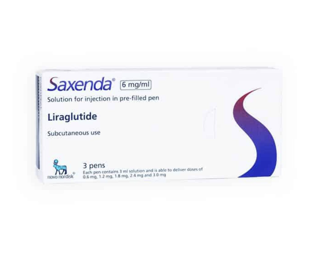 Saxenda® is a glucagon-like peptide-1 (GLP-1) receptor agonist used for weight management in obese or overweight patients with related comorbidities. It acts by reducing appetite, promoting weight loss, and maintaining lower calorie intake. Saxenda® is primarily indicated as an adjunct to diet and physical activity for patients with an initial BMI of 30 kg/m² (obese) or 27 kg/m² (overweight) in the presence of weight-related conditions such as hypertension or type 2 diabetes. It is available as a 6 mg/mL solution in pre-filled syringes and is injected subcutaneously.